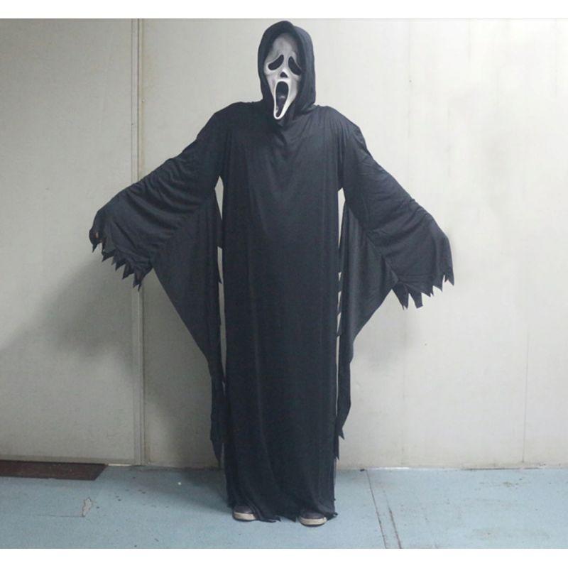 | Autentyczny kostium | Zestaw zawierający maskę, ciemny płaszcz z kapturem i rękawiczki, idealny na Halloween. |
